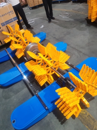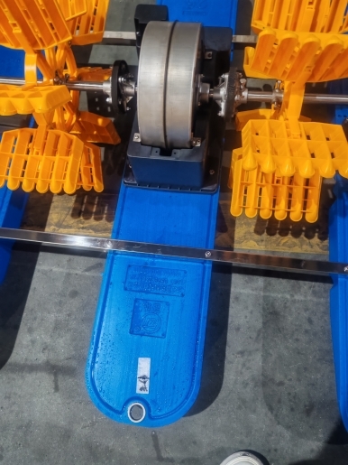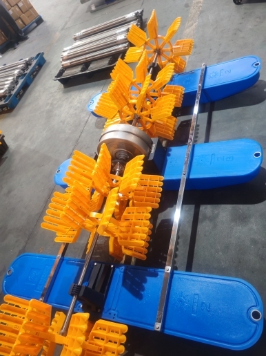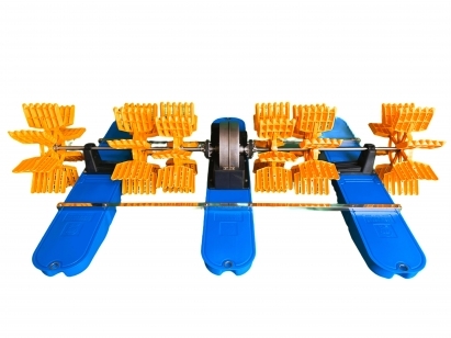 Лопастные колеса были специально разработаны для целей аэрации. Они создают очень хорошее течение. Эти специальные лопасти легко прикрепляются к колесам. Конфигурация лопастей и колес гарантирует оптимальную циркуляцию воды и разбрызгивание её с минимумом затрат электрической энергии. Очень высокая степень насыщения воды кислородом, эффективная дегазация в сочетании с сильным течением это преимущества данной конструкции.