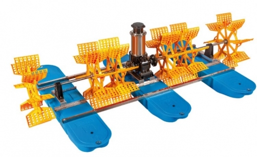 Лопастные колеса были специально разработаны для целей аэрации. Они создают очень хорошее течение. Эти специальные лопасти легко прикрепляются к колесам. Конфигурация лопастей и колес гарантирует оптимальную циркуляцию воды и разбрызгивание её с минимумом затрат электрической энергии. Очень высокая степень насыщения воды кислородом, эффективная дегазация в сочетании с сильным течением это преимущества данной конструкции.