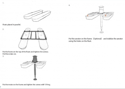 • Фіксування аератора повинно бути виконано таким чином, щоб не перешкоджати руху аератора по вертикалі (вгору-вниз). Ця вимога необхідна для збереження плавучості аератора, що в свою чергу перешкоджає попаданню води всередину електродвигуна;